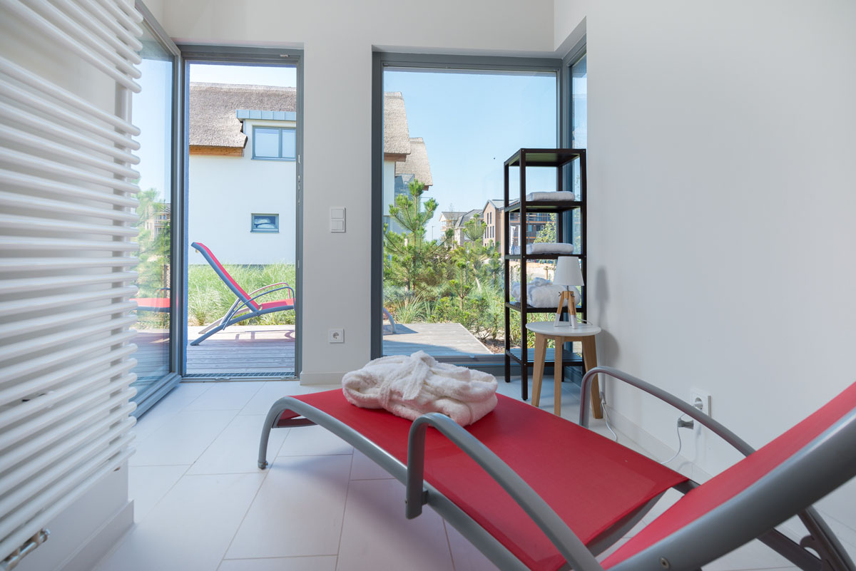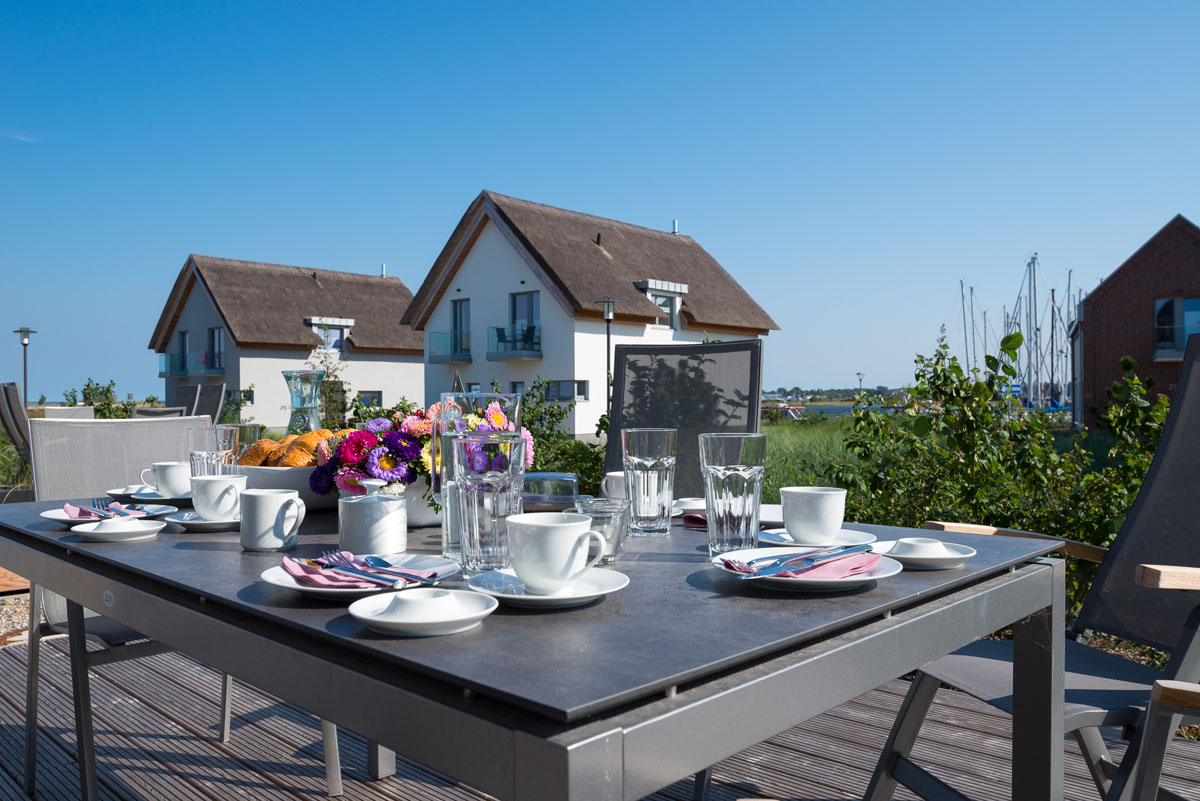 Neues, qualitativ hochwertig eingerichtetes Domizil mit finnischer Sauna, luxuriösem Wohn-/Essbereich, Kamin, 3 Schlafzimmer (insgesamt 6 Erwachsenenbetten), großzügiger holzgetäfelter Terrasse und wunderbarem Blick auf die weite Ostsee und den romantischen Segel-Yachthafen.