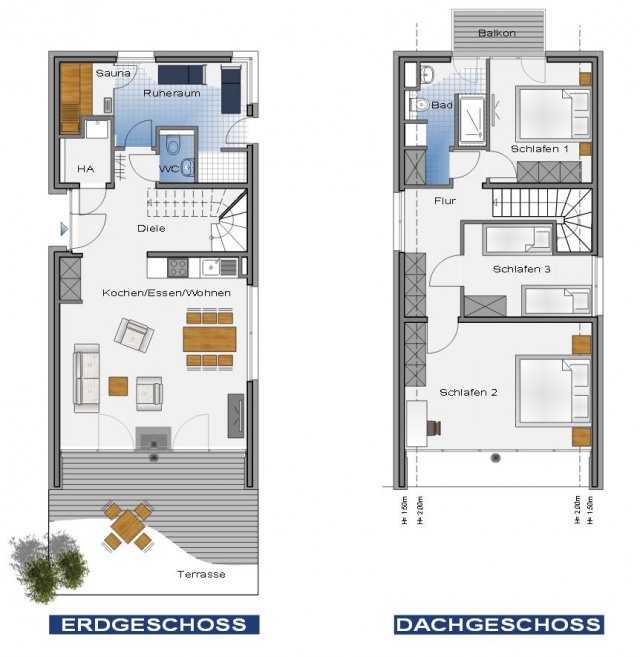 Bettenausstattung: 2 x 90x200, 2 x 100x200, 1 x 180x200
